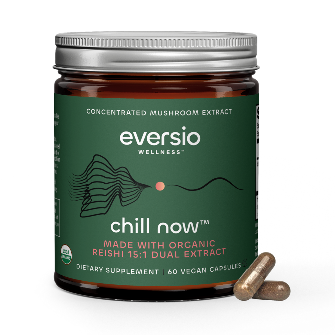 We start the morning with ½ tsp of one of our EVERBLENDS in our daily smoothie. Then, we take capsules of whatever the moment might call for midday, and we might end the day with Chill Now reishi capsules in the evening or 30-60 minutes before bed to support optimal relaxation and sleep quality.