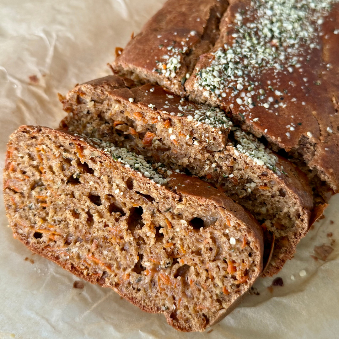 Looking for a cozy, nourishing treat that actually supports your energy and wellbeing? This carrot cake loaf hits all the right notes: lightly sweet, warmly spiced, and packed with ingredients that help you feel steady and satisfied.