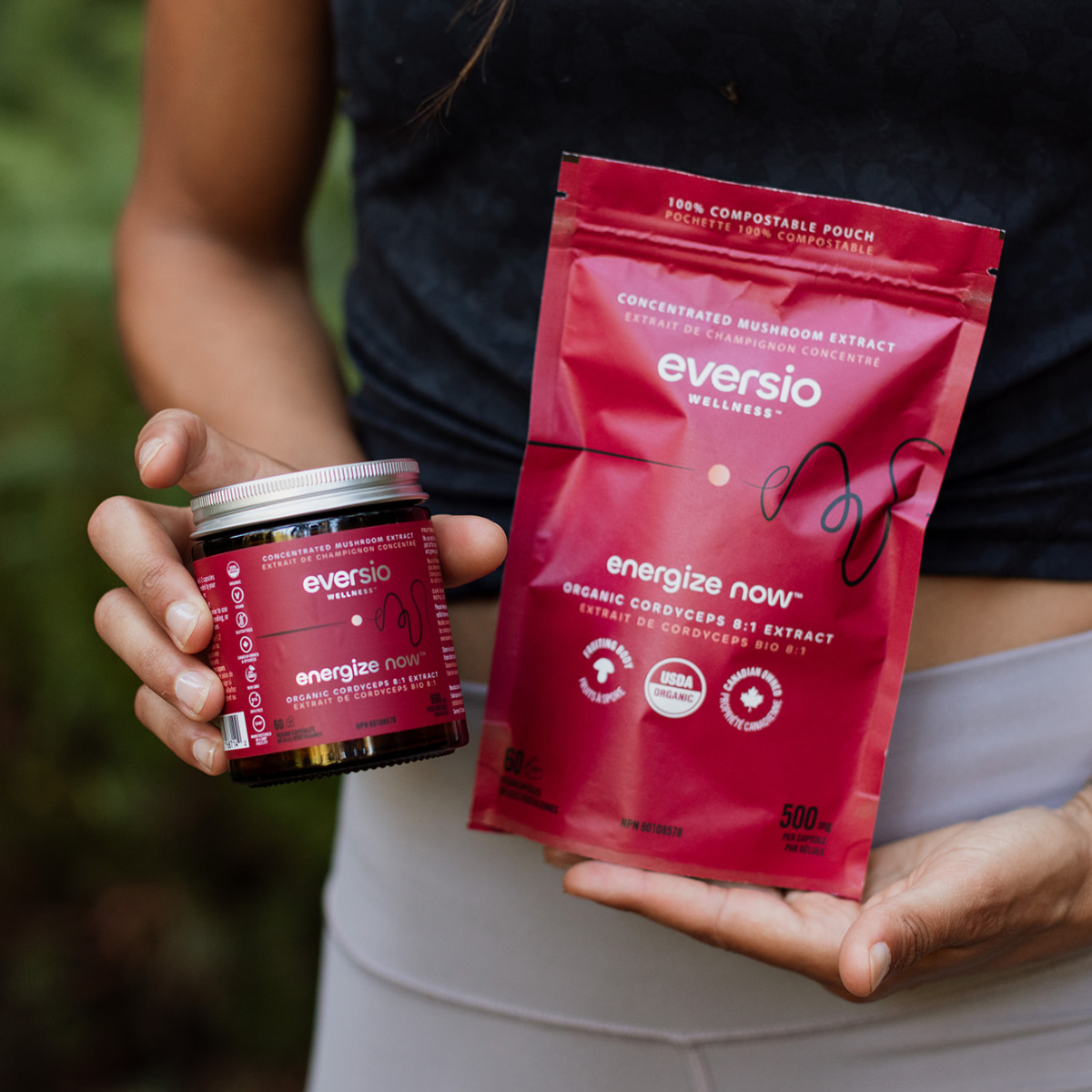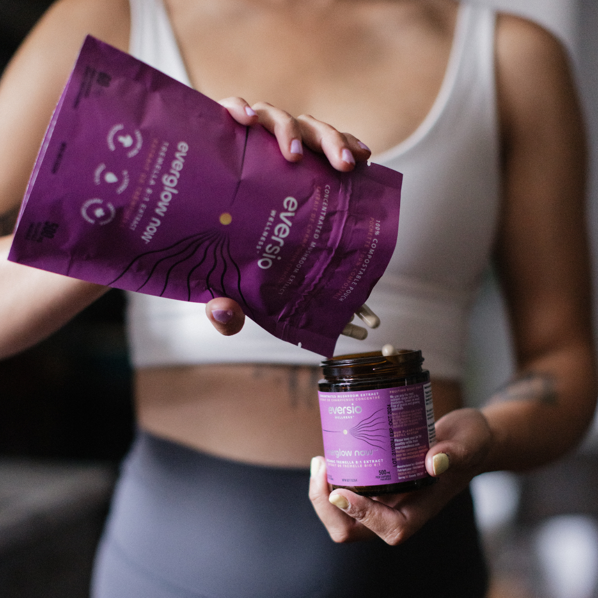 The Eversio Wellness functional mushroom extract supplements you know and love just got a ZERO WASTE upgrade. Eversio mushroom extract capsules and blends now come in 100% compostable refill pouches for a healthier you and a healthier planet. This new refill system cuts down on carbon emissions and waste thanks to the addition of light weight and compostable refill pouches. Keep reading to learn how refills work with your Eversio Wellness supplement routine.