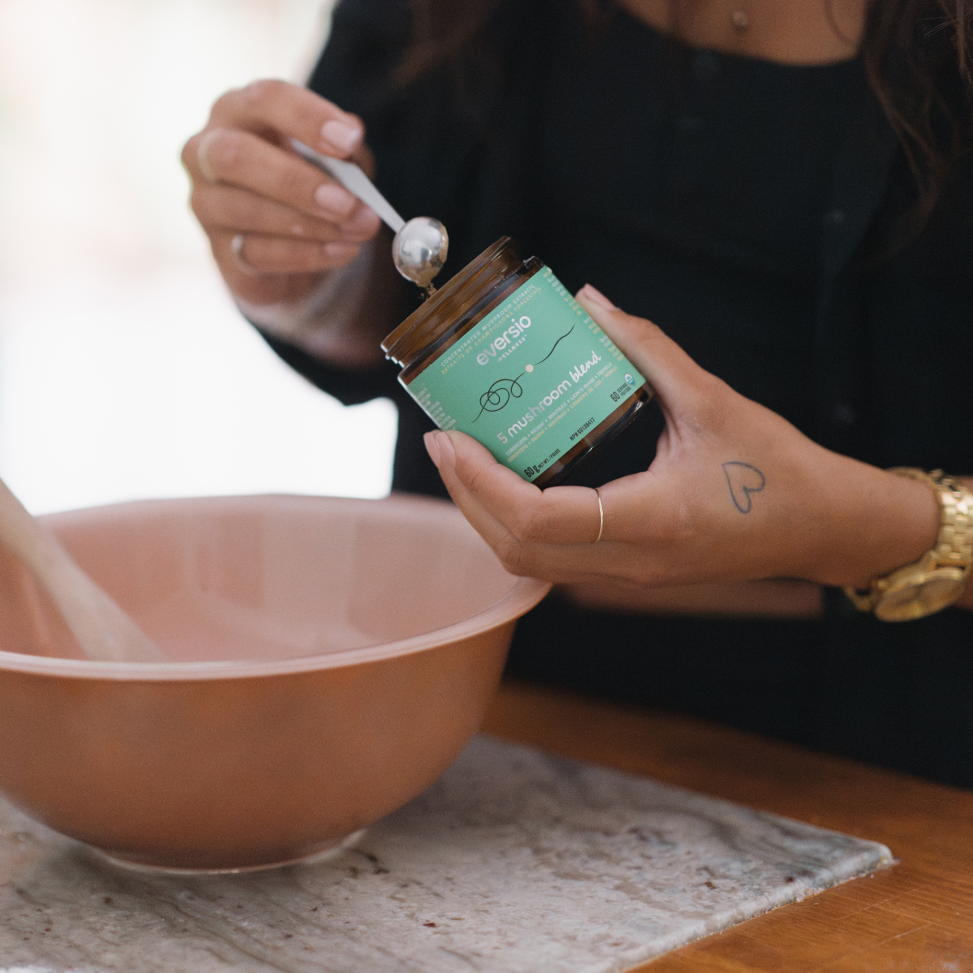Each day, use the ½ tsp included in your set to measure out your mushroom blend with care and add it to your favourite coffee, tea, or green smoothie. This simple act becomes a moment of mindfulness, connecting you to your wellness journey with each scoop. As you stir it into your drink, take a moment to reflect on your intentions for the day, letting this small ritual ground you in your routine. Whether it’s the first sip of your morning coffee or the refreshing taste of a smoothie, this practice helps you stay in tune with your body and mind, making your journey toward well-being intentional and meaningful.
